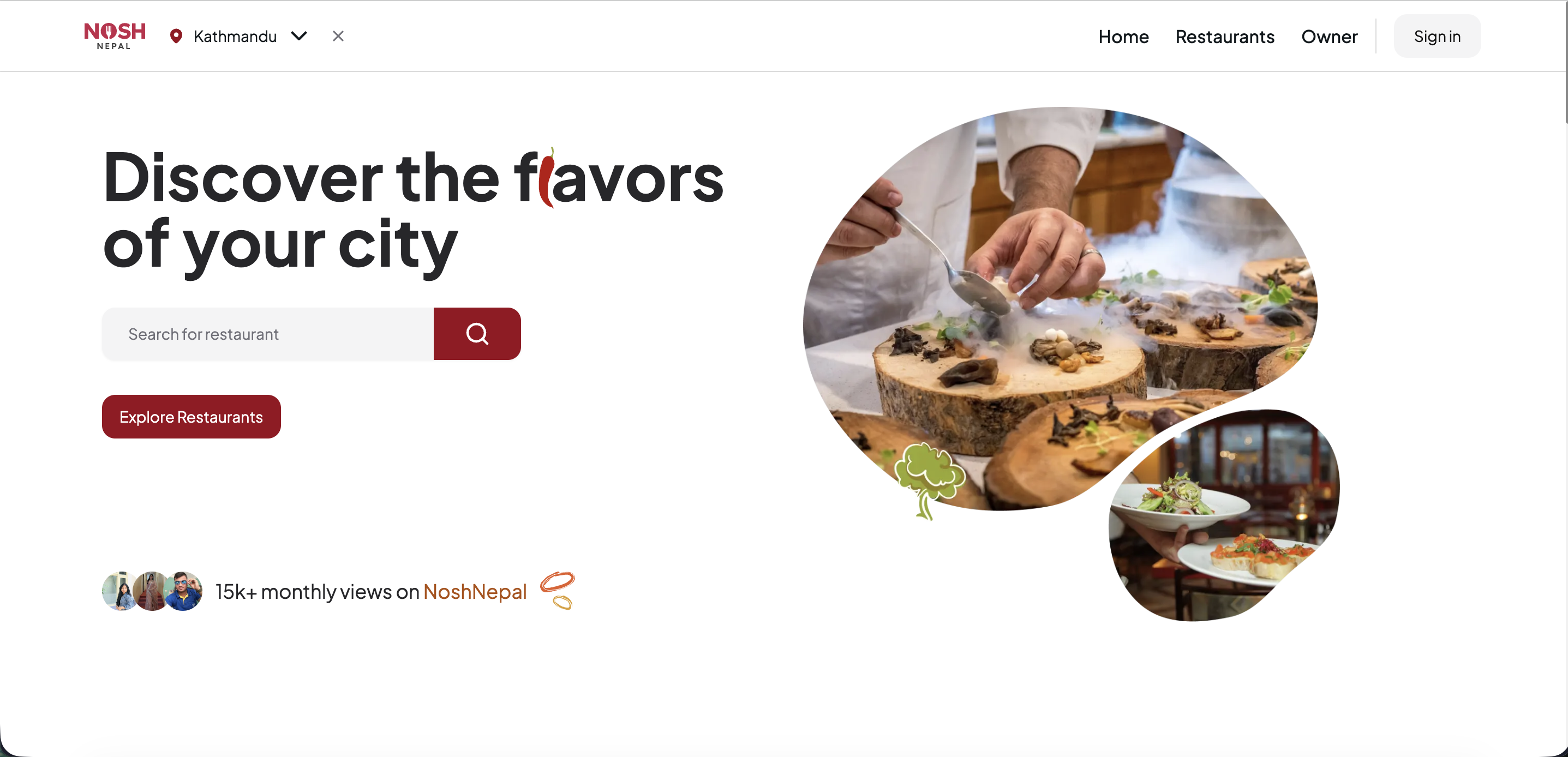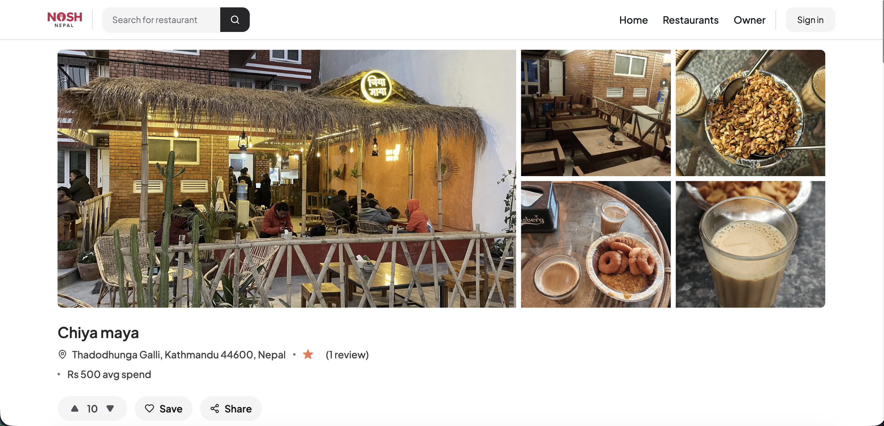 NoshNepal is Nepal restaurant review application that provides user with the previlege of searching the restaurant,view reviews on the restaurant and user is able to review their own experience on the platform.